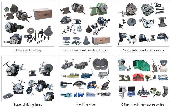 Продукция: делительная головка, поворотный стол, фрезерная головка, плоскогубцы, балансировочный станок, держатель электрического ножа, задняя бабка и т. Д.